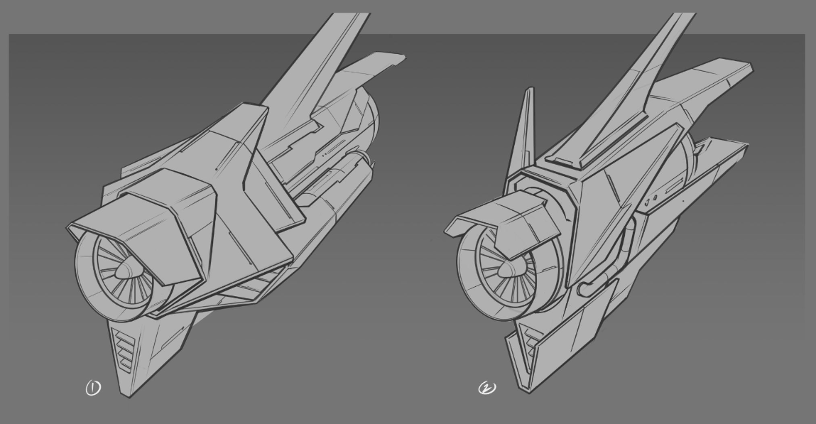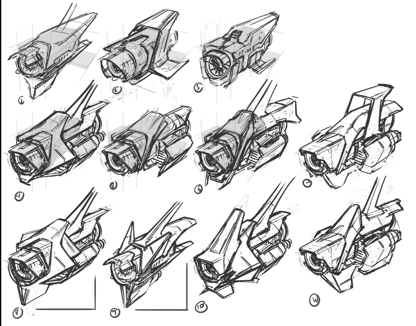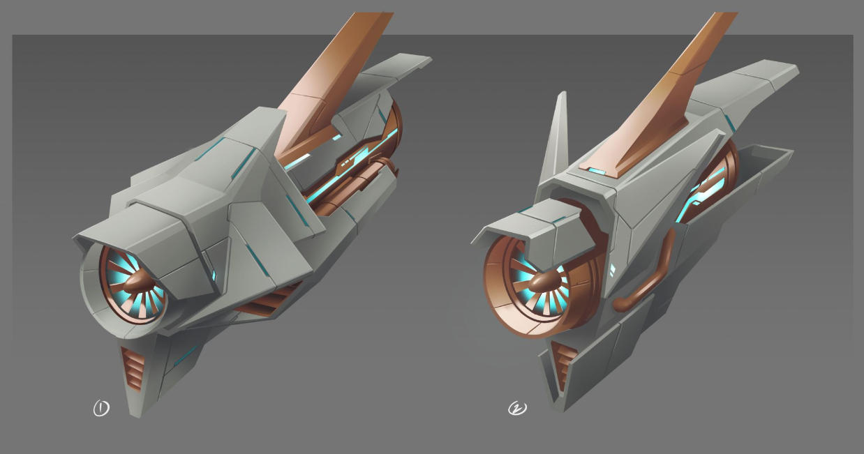 Below is a look at some of the early concepts for our Saborian ship engines - Using familiar shape language to inform the designs and keep uniformity across the Saborian culture. You'll see similar shapes across other Saborian ship parts, as well as Saborian outfits and Island Creator assets.