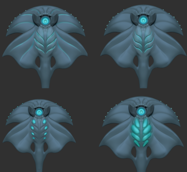 The bottom two images are experiments with how the Atlas stones imbued within the Manta's body should be shown visually. Our Manta has come a long way since this earlier version.